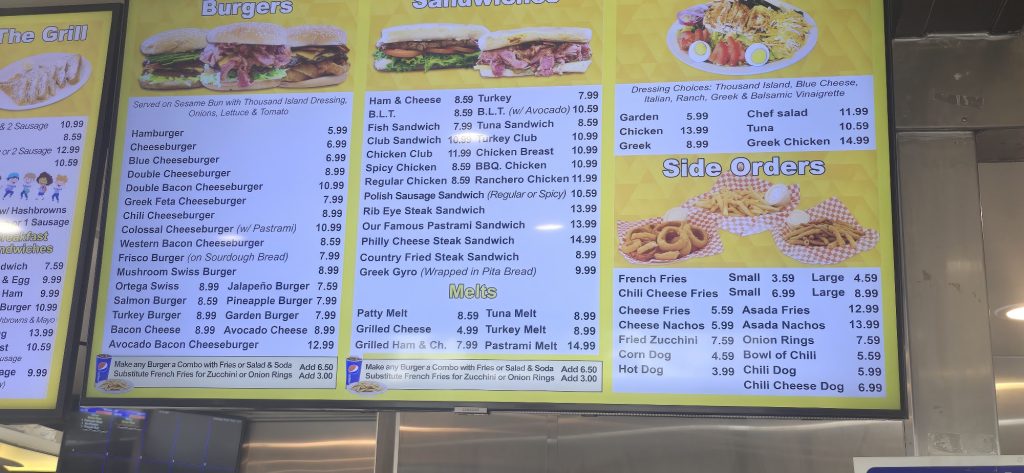 A diverse range of food options is offered at Yellow Basket, catering to various tastes and preferences. Throughout the day, breakfast, lunch, and dinner are served with a focus on American comfort food and a selection of Mexican-inspired dishes. The breakfast menu includes hearty items such as the Breakfast Burrito with 2 Meats, which is enjoyed by many. Lunchtime brings a variety of burgers, including the popular Double Bacon Cheeseburger and the Colossal Cheese Burger. For those seeking Mexican flavors, Chilaquiles and Carne Asada Fries are also available. These dishes are crafted to provide satisfaction and variety in every meal.